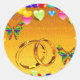 Gays have the right in most states to get married now. Wedding rings with rainbow colours balloons and hearts.