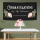 Elegant and modern styled wedding congratulations banner for the newlyweds. Wish your happy couple an inspirational quote "May Your Love Always Grow" or other personal message. Monogram with the couples names to create your own wedding banner. Perfect for engagement parties too! Stylish banner includes pink flowers with green leaf accent. Black background. Typography style congratulations text.