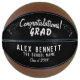 Congratulations Grad Black and White Graduation Basketball. White text on a black background and two graduation hats. A great gift and keepsake basketball for a graduate who loves sports.
