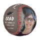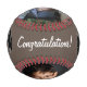 Congratulations Grad Brown Graduation Cap 2 Photo Baseball. White typography on brown, graduate cap and 2 photos. Add your photos, graduate name, school name and year. You can change any text on the baseball. This custom and personalized baseball is a perfect gift for a graduate.
