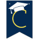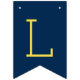 Celebrate your graduate with this bold graduation party bunting garland! The design features a grad cap on the lead pennant followed by alternating rich navy blue and bright yellow pennants spelling "Congratulations." Hang across a dessert table, photo wall, or party entrance for a vibrant, school-spirited focal point at any high school or college graduation celebration. Letters and colors are fully customizable.
