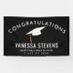 Modern graduation banner featuring bold white lettering with an black background. The design features a white graduation cap with the phrase "Congratulations ". Personalize navy graduation banner by adding the graduate's name, school name, and graduation year. For a more custom look, change the background to your school colours. The graduation poster is perfect to use for your high school or college graduation party!