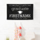 Celebrate the graduate with a custom banner. Personalize the banner and hang it up to make an eye-catching graduation party decor. You can also hang it at home or at an event. Make sure to change any colours and other design elements in the advanced design area.