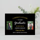 Congratulations To Our Graduate. A simple custom 2 photo and typography design to celebrate the achievement of a loved one who has graduated from high school or college. Replace each image with a vertical picture of the graduate. The white and gold text can be customized and personalized with the name and class of the graduate and their high school or college. The special celebration design is yours to customize and personalize as you wish.