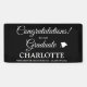 Fully customizable white text, black solid plain background. With one graduation cap topper.