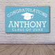 Celebrate the graduate with a custom banner. Personalize the banner and hang it up to make an eye-catching graduation party decor. You can also hang it at home or at an event. Make sure to change any colors and other design elements in the advanced design area.