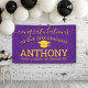 Celebrate the graduate with a custom banner. Personalize the banner and hang it up to make an eye-catching graduation party decor. You can also hang it at home or at an event. Make sure to change any colours and other design elements in the advanced design area.