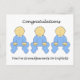 Three cartoon babies in blue romper suits, smiling. The image is accompanied by the text 'Cngratulations you're Grandparents to triplets'.