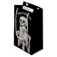 Skeleton holding a king and queen of hearts playing cards in bony fingers on black background for wedding congratulations