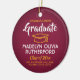 Commemorate the graduate's achievement with a custom photo maroon and gold round graduation Christmas ornament. Picture and all text are simple to customize. Include school name and degree, congratulations, thanks mom and dad, or other message of your choice. Design features a burgundy red background, gold yellow graduation cap, personalized modern typography name, school, & class year, and one photo of your choice, such as a senior picture or image from the commencement ceremony. Makes a thoughtful keepsake gift idea and an elegant addition to Xmas home decor. Congratulations to the graduate!