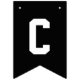 Modern and simple graduation party bunting banner features "Congratulations!" with grad cap accent Black bunting flags with alternating white and gold letters in sporty varsity letter style. Note, colours can be customized to match school colours or party colours.