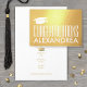 Congratulate the graduate in style with this elegant gold real foil graduation greeting card. All text is simple to customize. Design features modern minimalist typography, personalized name, and greeting inside that reads "DREAM big SPARKLE more SHINE bright CONGRATULATIONS." Please note that mortar board and text inside is printed with gold colour, not metallic foil. This card is a stylish and chic way to celebrate the graduate's success and accomplishment. For a unique finishing touch, sign interior with a gold pen.