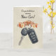 Celebrate a new car milestone during the autumn season with this warm design. Featuring watercolor car keys accented with golden and orange autumn leaves, it’s the perfect way to say congratulations with a seasonal touch. A thoughtful choice for fall purchases, car gifts, or simply honouring someone’s exciting new ride.