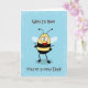 Cute Congratulations new Dad greeting card features illustrated cartoon bumble bee, hands on hips, in front of blue spatter background.