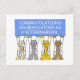 Cartoon cats wearing white coats and standing up on their back paws. The cats are holding up a blue sign that says 'Congratulations on graduating as a veterinarian'.