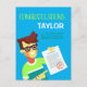 Well done! - a colourful gift for anyone who has had exam success at college, school or in life! Depicting a caricature of a cheerful young man celebrating his exam results.