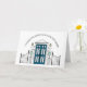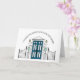 This is a modern congrats on your new home card with a simple vector drawing of a blue house door. Add your text and company logo