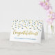 Wedding congratulations card for the parents of the bride with blue and gold confetti pattern.