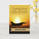 Congratulations on Your Promotion to lieutenant colonel in the Air Force. Paper greeting card with a photograph of an Air Force military jet set against a blazing sun in the sky. Add a name to the gold toned ribbon on the cover of the card. Art, image, and verse copyright © Shoaff Ballanger Studios, 2022.