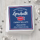 Add an elegant personalized touch to college or high school graduation party decorations with these custom red, white and blue paper napkins. All text is simple to customize. Design features a dark blue background, red mortar board cap, stylish modern typography, and handwritten style script calligraphy. Congratulations to the graduate!