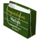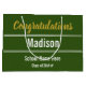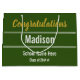 Congratulations to the graduate! In the centre, there's a place for the graduate's name in white text. At the top, faux (not foil) gold script says 'Congratulations'. At the bottom, you can add the class of year and the name of the graduate's school. That text is also white. The bag is forest green.