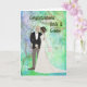 Carte de félicitations pour un mariage mixte. La mariée est noire, et le marié blanc. Elle porte une belle robe mariage et le marié porte un tux noir et gris. L'arrière - plan est vert design. Les mots sur le devant sont permanents, cependant, ils peuvent être changés par vous à l'intérieur. Merci à Design Cuts pour certains des éléments de la conception.