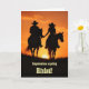 Two riders off into the sunset. A great country western way to say Congratulations on getting married, or your wedding, or as I have it, getting hitched! The text is changeable.