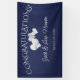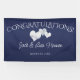 Congratulations White Hearts on Navy Elegant Wedding Banner designed for your Wedding Reception. The text includes: CONGRATULATIONS!, The Bride and Groom's Names and Wedding Date. To personalize, simply insert your text into our easy template, replacing the sample.