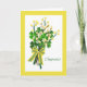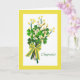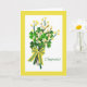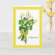 Congratulations card features a spring bouquet of lucky shamrocks and yellow blooming branches along with pussy willows. The bouquet is bound together with a faux (not real) ribbon-bow. Can customize and use for an engagement, wedding, wedding vows, or other spring event. Art, image, and verse copyright © Shoaff Ballanger Studios, 2021.