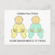 Twin babies in lemon and pale green outfits sitting smiling. Above the babies is the word 'Congratulations' and underneath 'You're Grandparents'. A great card or gift to celebrate anyone becoming Grandparents!
