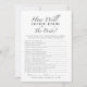 Présentation de la carte de jeu "How Well Do You Know The Bride?", un ajout élégant à toute douche nuptiale! Avec un design minimaliste noir et blanc, cette carte de jeu invitation les invités à tester leurs connaissances sur la mariée de manière amusante et attrayante. Parfait pour créer des moments mémorables et des rires, il s'intègre parfaitement dans n'importe quel thème de douche nuptiale. Conçue par CaMiDesigns, cette carte de jeu est une façon délicieuse de célébrer la future mariée. Pour obtenir de l'aide sur les commandes, l'expédition, les informations sur les produits, etc., veuillez contacter directement le service à la clientèle de Zazzle.