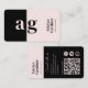 Connect Black Pink Monogram QR Code Social Media Business Card