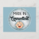 Cette drôle de carte postale présente un mignon visage de bébé blanc qui dit "Fabriqué dans le Connecticut" sur un arrière - plan bleu. Parfait pour les nouvelles annonces pour bébé ou juste pour le plaisir.
