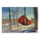 This note card features a Connecticut landscape after a winter storm. To the left of the red barn is a cranberry bog.