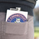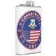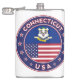Badge of Connecticut with flag of Connecticut and flag of USA colours, rounded shape.