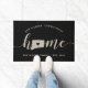 Show some home state pride with this custom doormat featuring "home" in tan calligraphy script lettering with a silhouette map of the state of Connecticut standing in for the letter "O." A heart illustration inside the state map completes the design; you can change the position of the heart to your home city by opening the design tool and dragging the heart shape to your favourite spot. Personalize with your home city, family name and year established to create a perfect finishing touch for your front door, or a memorable housewarming gift.