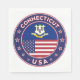 Emblem of Connecticut with flag of Connecticut and American flag, rounded shape
