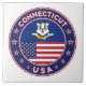 Badge of Connecticut with flag of Connecticut and flag of USA colours, rounded shape.