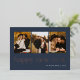 Share holiday greetings with these beautiful New Year photo cards featuring 3 vertical or portrait oriented photos aligned side by side. "Happy New Year" appears beneath in rose gold foil connected lower case serif lettering accented with stars. Personalize with your family name and the year.