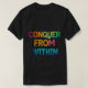 The "Conquer From Within" t-shirt design features a striking, minimalist illustration of a person breaking free from chains, symbolizing empowerment and personal transformation. The graphic is complemented by bold, modern typography that reinforces the message of inner strength and resilience. With clean lines and a powerful visual message, this design serves as a reminder to overcome obstacles and harness the power that lies within. Perfect for anyone motivated to rise above challenges and take control of their own destiny.