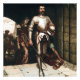 Edmund Blair Leighton was an English painter of Regency and medieval subjects. This painting is called “Conquest” and depicts a knight in shining armour standing confidently in a stone archway, his helmet in one hand and a sword in the other. A woman in a long dress follows him, while another figure sits on the ground in the background.