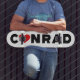 Le nom Conrad avec la lettre ou remplacé par un coeur d'amour rouge. Les couleurs peuvent être changées.
