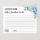 Blue floral Conseils pour Maman & Papa d'être Baby shower Carte de jeu. Jeux en version anglaise et espagnole inclus (avant et arrière). Ajoutez le nom de Maman & Papa pour effacer le design pour les versions anglaise et espagnole. Pour une personnalisation supplémentaire (modifier le libellé, ajouter une photo, la couleur de police, le style de police ), cliquez sur personnaliser, faites défiler vers le bas et cliquez sur le lien "cliquer pour customiser plus loin". COMMENT JOUER : Les clients rempliront des cartes pour partager leurs meilleurs conseils pour le Joyeux Couple.