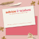 Créez un souvenir inoubliable pour le Diplômé avec ces conseils et cartes de souhaits pour la Rétro Boho. Ces cartes peuvent être incluses avec votre Faire-part de graduation ou Invitation de fête, ou les avoir disponibles à la fête pour les invités à remplir. Ces Cartes de Conseil sont dotées d'une typographie vintage rétro et d'une palette de couleurs rose et orange. L'arrière est vide pour plus de place à écrire, ou vous pouvez customiser l'arrière en cliquant sur le bouton "Modifier en utilisant l'outil de conception".