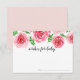 Des cartes "voeux pour bébé" sucrées permettent aux invités du baby shower de partager leurs espoirs et rêves pour votre bébé sur le chemin. Les cartes comportent une bordure supérieure de roses d'aquarelle en rose rougeâtre profond, accentuée de feuilles verts, avec "souhaits pour bébé" dans un script de calligraphie à la main moderne.