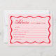 Célébrez avec ces conseils aventureux personnalisés rouge et rose pour les cartes de réponse de la mariée, parfait pour l'amour est dans l'air des idées de douche nuptiale et valentines les idées de douche nuptiale. Cette carte à thème valentines nuptiale douche est idéale pour un baiser la douche nuptiale au revoir ou une fête à thème mariage rouge et rose. Partagez des conseils sincères dans le style!