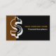 Carte de visite minimaliste noir brun consultant financier, avec le symbole du dollar en gras sur arrière - plan noir et brun. Personnalisez-le avec votre texte et ajoutez votre logo, vos initiales/monogrammes. Une carte de visite minimaliste qui attire l'oeil avec un look professionnel.