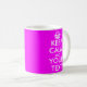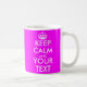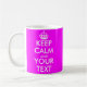 Conserver le calme et votre tasse de texte | Couleur rose néon chaud. Personnalisable Conserver le calme Mug avec des couleurs personnalisées comme le rose néon. Créez votre propre humoristique Gardez le calme et continuez votre parodie. Modifiez simplement le texte de ce modèle pour créer un design unique. Les exemples les plus populaires sont : Restez calme et faites la fête. Restez calme et aimez-moi. Restez calme et buvez du thé. Les tasses personnalisées sont une excellente idée cadeau pour les amis et la famille.