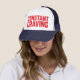 CONSTANT CRAVING fun and ironic slogan on trucker hat, red, funny typographic statement, inspired by tv comedy character frank rossitano. constant and perpetual cravings.