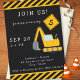 Célébrez la journée spéciale de votre petit avec cette invitation personnalisée d'anniversaire garçon avec un thème de construction adorable. L'invitation a une pelle, un panneau de rendement et un séparateur de sécurité routière. Il y a aussi des rayures jaunes et noires. Ajoutez le nom, l'âge, l'emplacement de la fête, la date, l'heure et les informations RSVP de votre enfant. Cette invitation à la fête pour enfants fait un grand ajout personnalisé à votre fête d'anniversaire thématique!